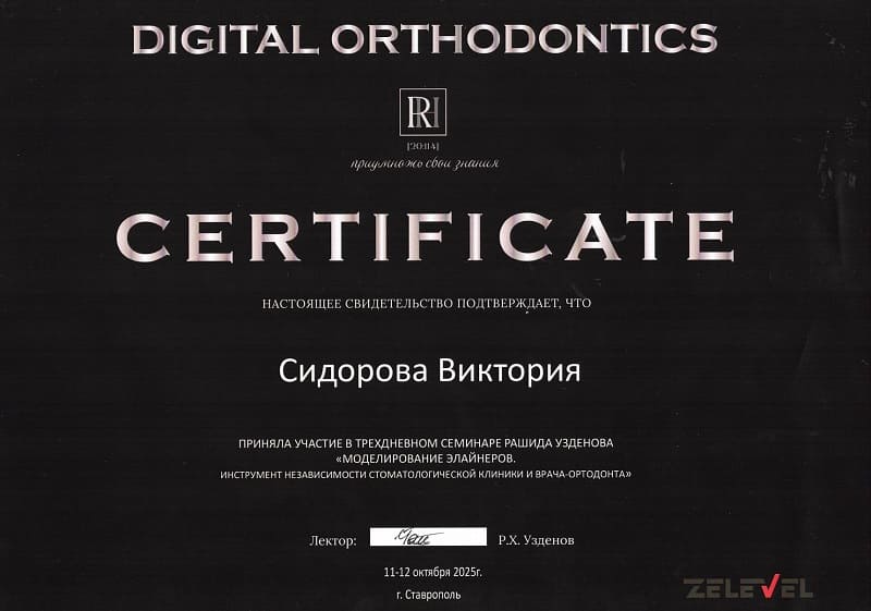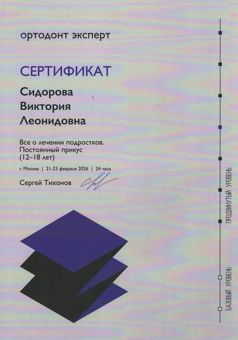График работы ортодонтического кабинета ПН-СБ: 9:00-20:00, ВС: 9:00-18:00. Записаться на прием к Сидоровой Виктории Леонидовне можно по номеру +7 (351) 225-15-05.
